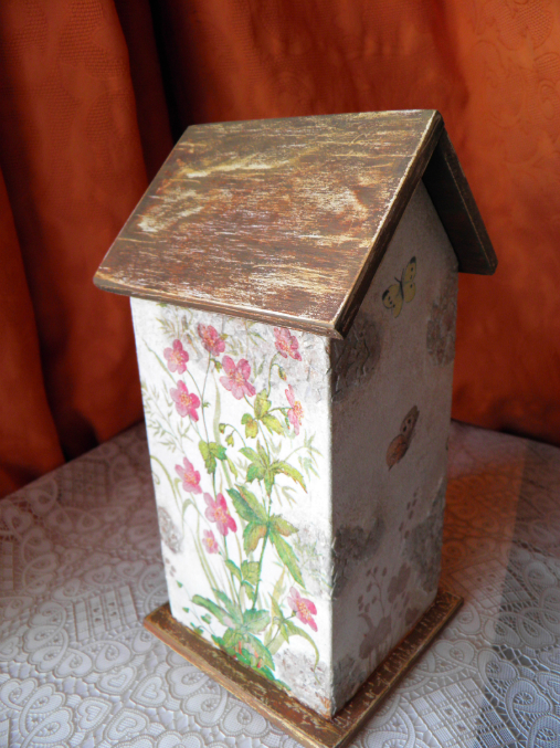 Крышу и подставочку сделала под фактуру дерева. Делала по наитию, но мне кажется, что получилось)