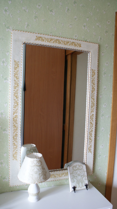 Материалы: Старое зеркало, торшер из икеа, заготовка ключницы, акриловые краски, салфетка, 2х шаговый кракле, матовый лак.