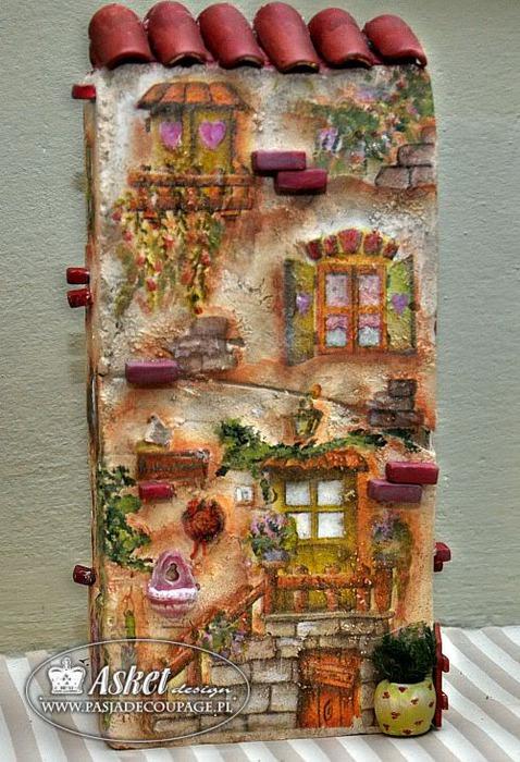 Имя рукодельницы Asket известно в мире декупажа. Asket - это псевдоним мастера, настоящее ее имя Магдалена Szwedkowicz-Kostrzewa. Ее работы интересны, пользуются большим спросом. Сегодня я хочу вам рассказать об одном направлении ее творчества - трехмерном декупаже кирпичей. Я даже не знала, что из обычного строительного кирпича можно получить оригинальные интерьерные украшения.