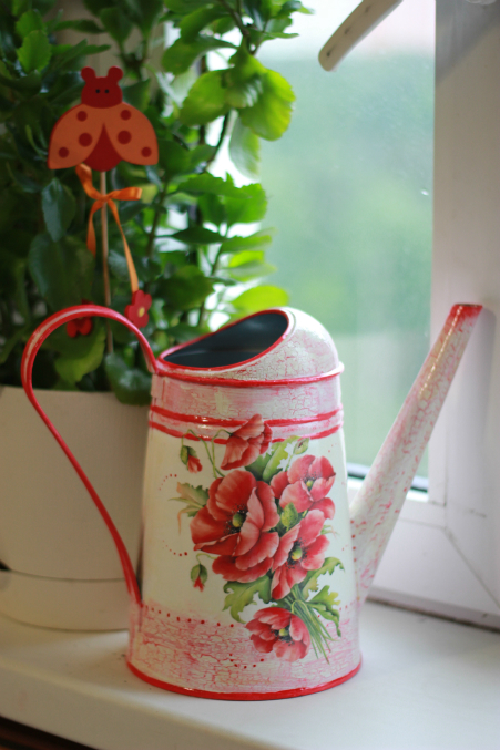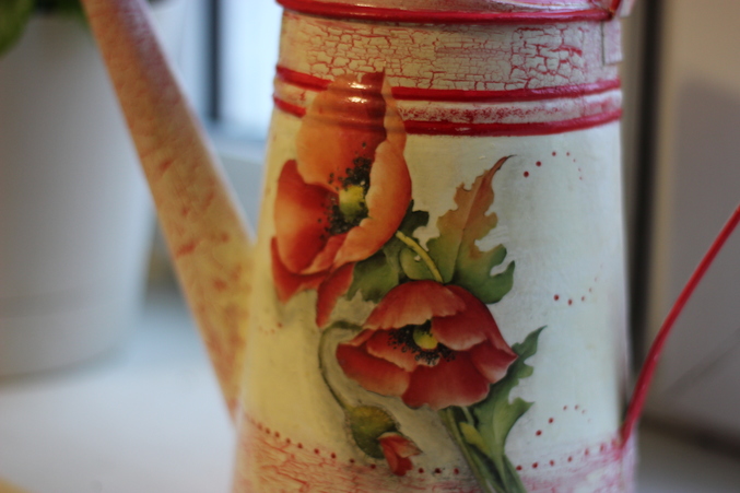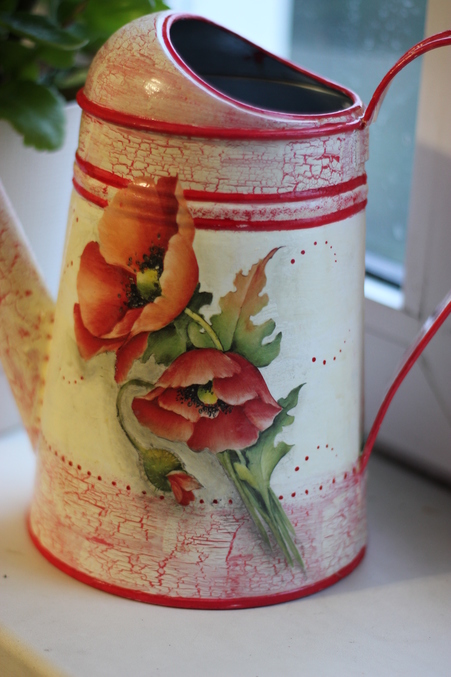 4. Вырезанные мотивы намочила на мин 10, затем приклеила к лейке;