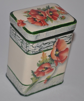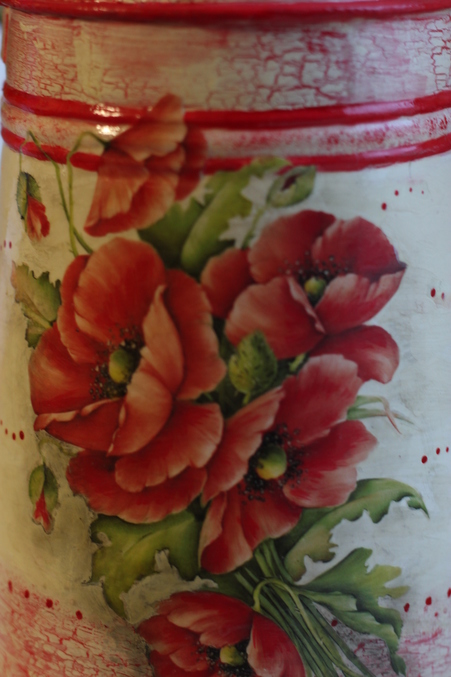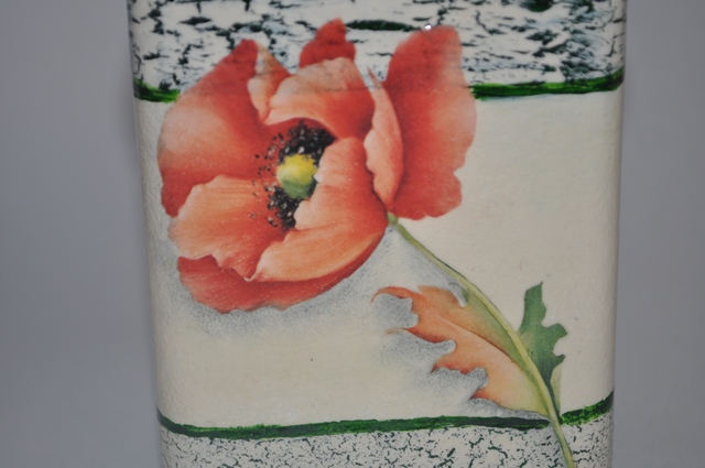 3. После тчательной просушки краски, нанесла на цветные места кракеле, через два часа (по инструкции) нанесла белую краску (без косяков не обошлось, кое- где дважды прошлась кистью и трещены смазались, нужно конечно было сначала на образце попробовать, поспешила...:();