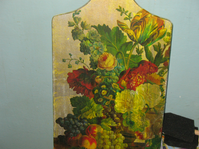 4-через 2 часа краска металлик бронзовая РАФАЕЛЬ,ФРАНЦИЯ.Вот здесь наверное и ошибка:слой был не толстый, и наверное так плохо губка прижималась к рабочей поверхности,что печально.