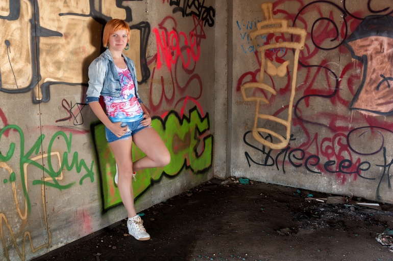 и в чём пошлость? в коротких шортах или рисунках на стене:)??как по мне- нормальное фото, фон не тот((( грязновато...