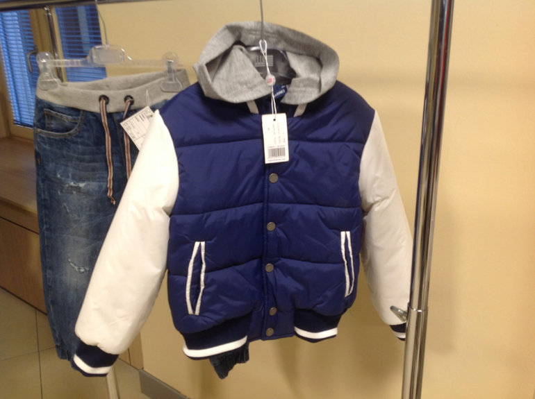 Можно еще курточку размер 4, цвет как на фото, синяя белый рукав.