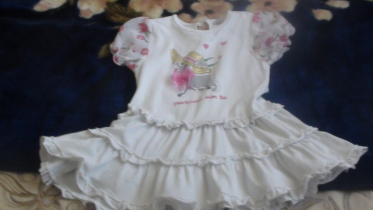 Добрый день.Заинтнресовали 4 комплект с розами,платье с синим с собачками,и если не купили последнее платье и колготки.Если актуально,напишите.Живём на Октябрьском поле.