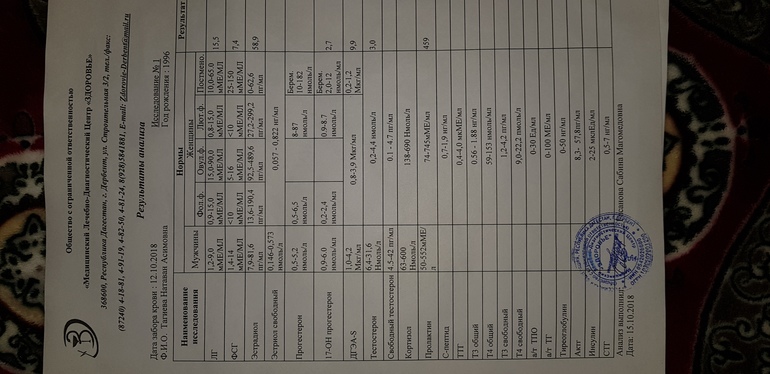 Здравствуйте. Была задержка в первый раз в жизни у меня. Замужем 4 месяца. Сделала узи. Сказали поликистоз. Попила таблетки и пошли месячные на 4день сдала на гормоны. Ответы получила, на сколько все плохо не могу понять по ним... прилагаю фото ответов анализа. Я как вышла замуж за 2 месяца набрала вес где то 8-10кг. Ела много сладкого. Думала это все может от этого.. сейчас диета сбросила 4кг...