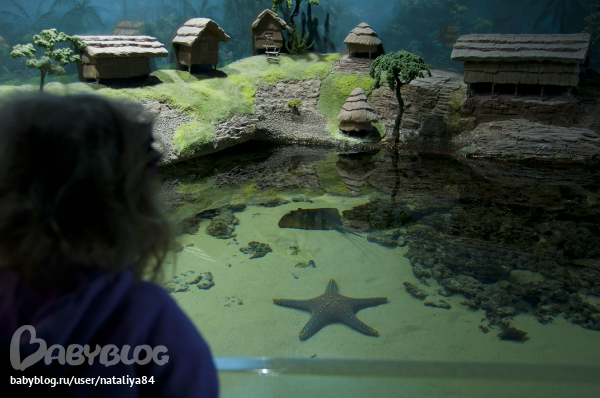 Музеи, выставкиНаходится он в Рио на Дмитровке. Были в будний день, поэтому народу очень мало, что нас и порадовало))). Впечатления очень позитивные, дочь в восторге!!! Только я думала, что он будет по больше. Дочку все подгоняла, а он и закончился. Помимо рыб были и змеи, крокодилы, хамелион, енот, обезьяна, птицы, целый мини зоопарк. И наконец фото, качество правда плохое((