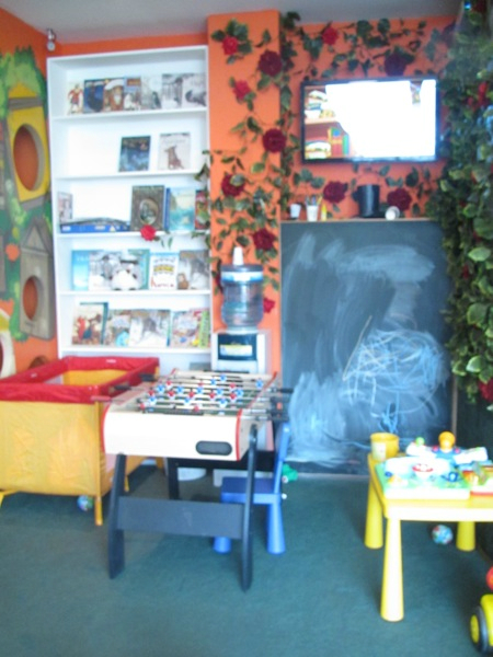 на мой взгляд было бы удобней совместить игровую и возможность родителям посидеть, выпить кофе и поболтать, пока дети бесятся в игровой.