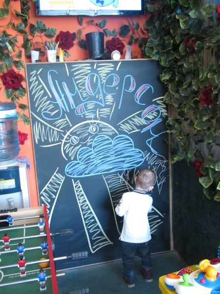ну и отдельно про аниматоров: Рисовали Даша с Гошей на доске мелом, хорошо рисовали. Потом тетя-аниматор взяла да нарисовала на всю доску солнышко и написала Андерсон! Зачем? Дети хорошо рисовали сами, а она все стерла и это при том, что кроме нас там уже никого не было? Хорошо, Гоша не растерялся и стал рисовать прямо на ее солнышке. А потом она так демонстративно раставляла все игрушки, хотя дети еще играли, что им даже было потом страшно взять их снова.