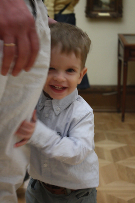 Миша очень серьезно подошел к делу: "Мама, папа и МИша идут в Гаеею" Понял, что мероприятие ответственное, когда его красиво нарядили) Он взял еще свой мобильный и положил его в карман брюк - КАК ПАПА. Периодически доставал, что-то там проверял, разговаривал и убирал его обратно с очень серьезным видом! Такой смешной малыш!)))