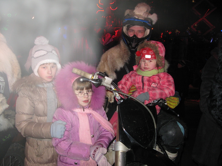 И, конечно, дед Мороз, появившийся на мотоцикле в сопровождении Хирурга.