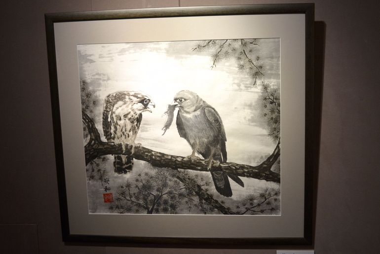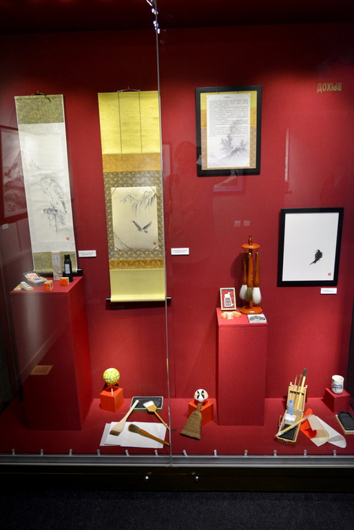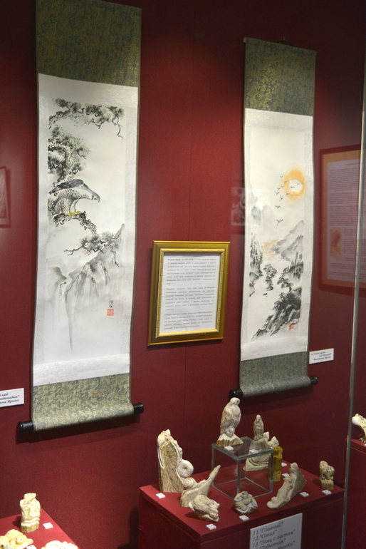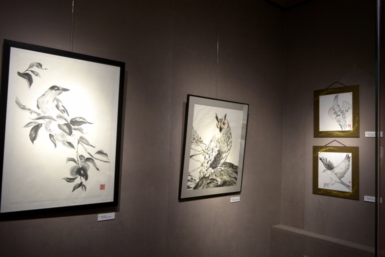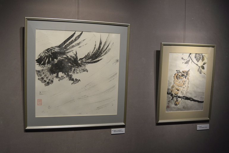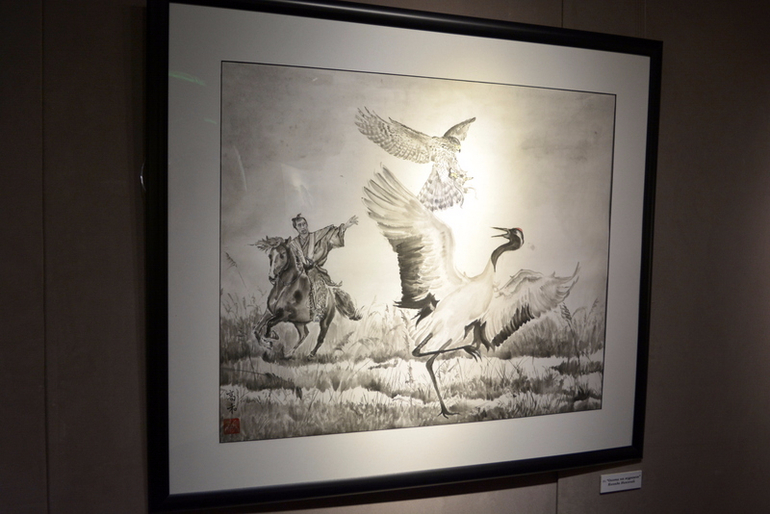 В Малом выставочном зале Дворца царя Алексея Михайловича проходила эта выставка. К сожалению, она уже закончилась, но очень хочется поделиться тем, что нам удалось посмотреть. Организовали выставку Региональная общественная организация «Творческий союз художников японской живописи Суми-э» совместно с Московским государственным объединённым музеем-заповедником. Монохромная живопись тушью по рисовой бумаге (или «суми-э» по-японски) была завезена в Японию в XIII веке китайскими монахами, проповедовавшими дзен-буддизм, которые использовали суми-э во время медитаций. С приходом к власти военных ,суми-э стала составной частью культуры сословия самураев, которые находили сходство между живописью и фехтованием, считая единым «путь кисти и меча».