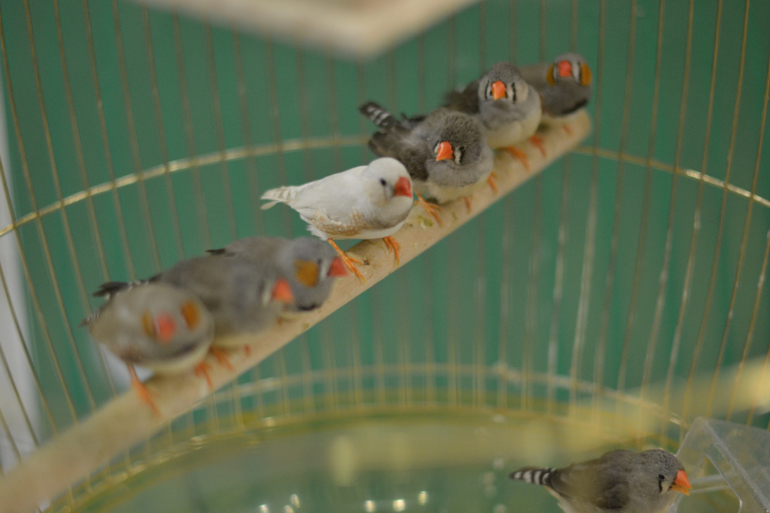 Несколько клеток с птицами. Есть и попугаи, и павлины, и голуби и другие виды.