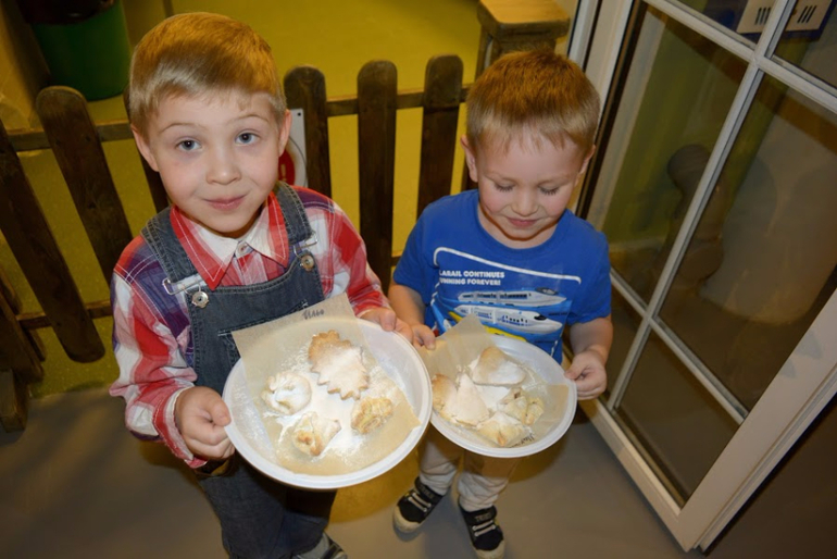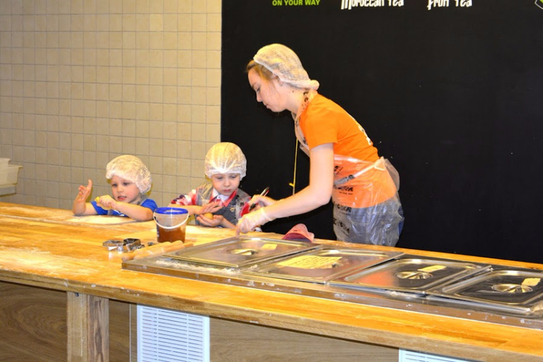 После работы пожарным Илюша пошёл поработать в Пекарню. Детям одевают фартучки и шапочки, они моют руки, им дают тесто, формочки и скалки. Предоставляется выбор декора печенек, но Илья ничего не выбрал, поэтому печенье просто посыпали сахарной пудрой. Это вторая профессия, которая очень понравилась Илюше. Он давно готовит вместе со мной и у него не плохо получается мне помогать. После Кидбурга мы пекли печенье постоянно, Илья шлифовал свою технику))) Все нормальные люди приводили себя в форму перед праздником, а я печенье трескала, ну очень много и оно всё такое вкусное было.