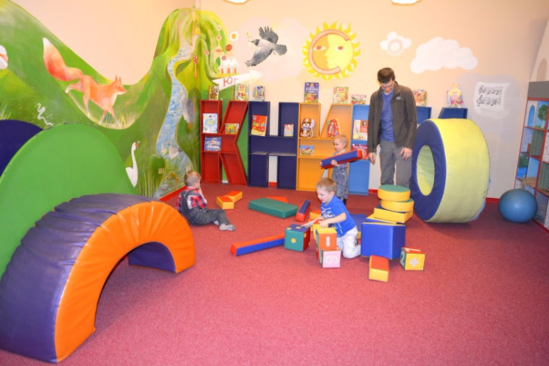 Когда мы почувствовали, что устали, то отправились в Музей азбуки. Это небольшое помещение, где можно посидеть, почитать, а ребёнок может и покувыркаться.
