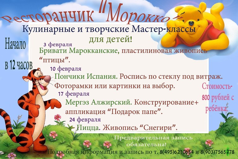 Кулинарные и творческие мастер-классы в ресторанчике "Морокко"