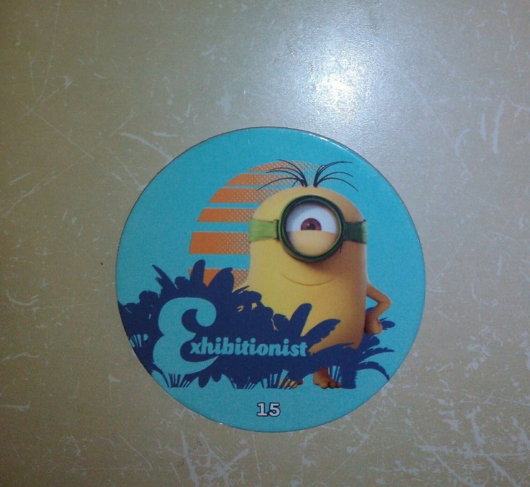 Эта детская фишка попалась нам в наборе Chipicao Миньоны,Эксгибиционист № 15 .Страшно представить ,что на первых номерах .