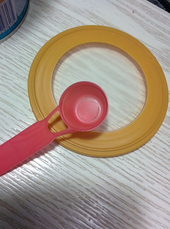Под ложечкой,есть своего рода защитный слой, после вскрытия которого мы и видим смесь)