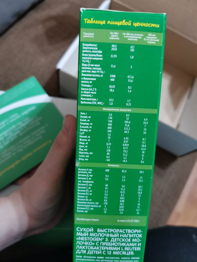 Смесь Nestogen 3 предназначена для деток от 12 до 18 месяцев. Упаковка прочная, красивая, с новым дизайном. В каждой коробочке есть мерная ложка, описано подробно, как разводить смесь. После растворения в воде не оставляет комочков. Очень радует состав- нет пальмового масла, содержит большое количество минеральных веществ и витаминов, необходимых именно в этом возрасте.