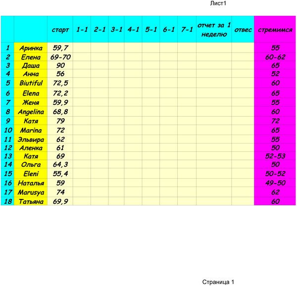 Наши отчеты и результаты:)Девочки!!!! Отписываетесь СТРОГО до 13:00!!!!! Чтоб потом после 13 я уже отредактировала новую табличку, а то бывало, что народ отписывался аж к вечеру и таблица не менялась.