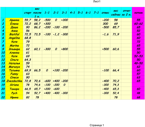 Наши отчеты и результаты:)Девочки!!! Отчитываемся до 13:00!!!