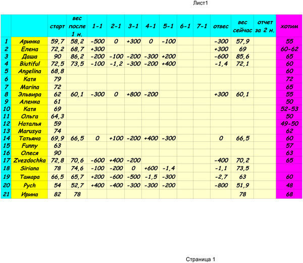 Наши отчеты и результаты:)Девочки!!! Отчитываемся до 13:00!!!