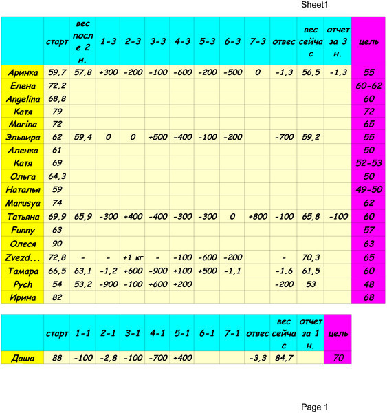 Наши отчеты и результаты:)Девочки!!! Отчитываемся до 13:00!!!