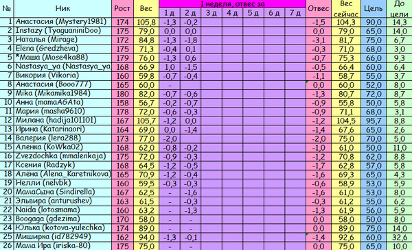 Наши отчеты и результаты:)Сегодня девочки почти все в сборе! Анастасия (Booo777), ты где?!
