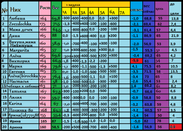 Наши отчеты и результаты:)С начала диеты,нас стало меньше на 14 человек!