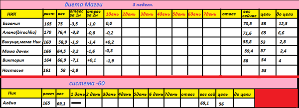 Наши отчеты и результаты:)Вот наша табличка за 1-ый день 3 недели.