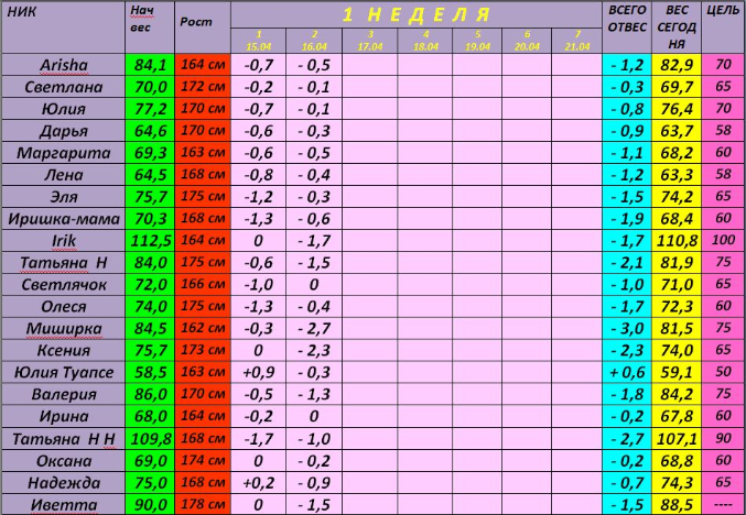 ХУДЕЕМ С 15 АПРЕЛЯ!!!!!!!! ТАБЛИЧКА