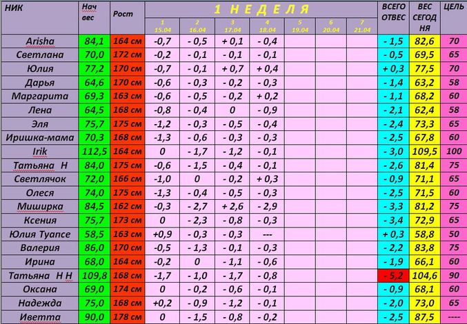 ХУДЕЕМ С 15 АПРЕЛЯ!!!!!!!! ТАБЛИЧКА