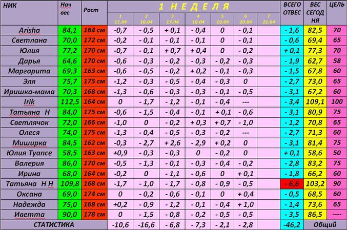 ХУДЕЕМ С 15 АПРЕЛЯ!!!!!!!! ТАБЛИЧКА