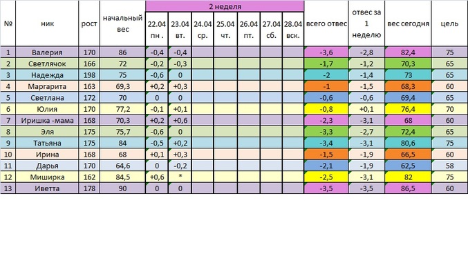 ХУДЕЕМ С 15 АПРЕЛЯ!!!!!!!! ТАБЛИЧКА Девочки, кто на диете с 8.04 отзовитесь (третья неделя)