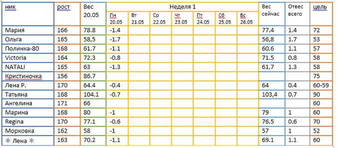 Привет!А я что-то поста не видела,про то когда отчитываться.Завтра тогда напишу,сегодня не взвешивалась.Диету блюду