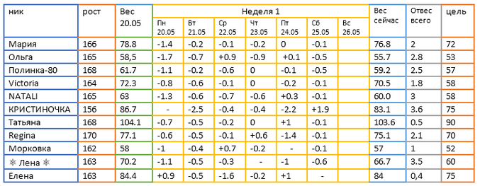 Наши отчеты и результаты:)Лидер общего отвесика @nancy1,Лидер сегодняшнего отвесика @Lena-89!Поздравляем=)))