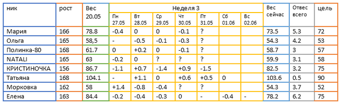Приветик! Мы , видимо, все косячили из- за фруктов, вот и растерялись:(((( я уж точно! Но завсег обберу себя в руки и повторяю первую неделю, а точнее 5 дней, т. К. В пятницу еду в Турцию а там точно на диете не буду:)))про вес свой не знаю, страшно аж.. Напишу во вторник утром, так что я в строю!!!!