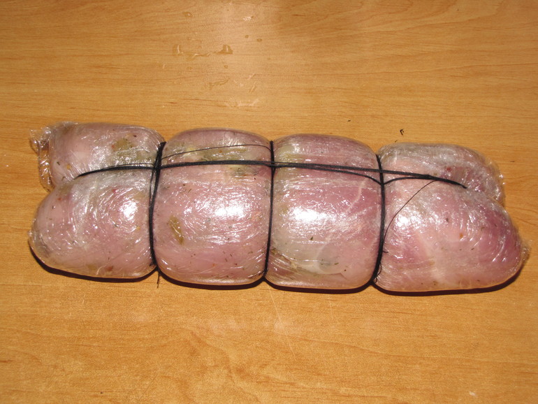 Заворачиваем рулет и оборачиваем пищевой пленкой