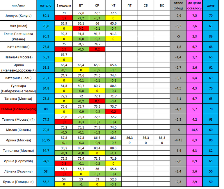 Пройдена половина пути. Мы большой и дружной компанией потеряли 64 кг уже!! То ли еще будет!!