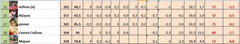 Наши отчеты и результаты:)Девоньки, я не поняла, почти у всех привесы, хм...