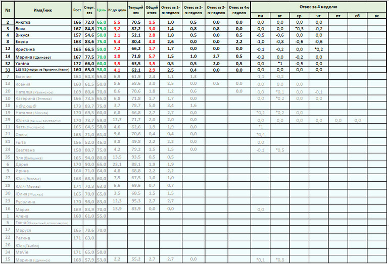 Приветик! Жалко конечно 7... Ну ничего страшного!! Главное за недельку передышки не набери много!! И пока не пропадай! Еще в понедельник отчитайся и подведем итоги! Ок? Тебе огромное спасибо за компания!
