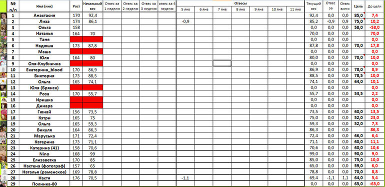 ПРОВЕРЯЙТЕ ТАБЛИЧКУ!!!! Красненьким, отметила тех, кто пока не написал стартовый вес.