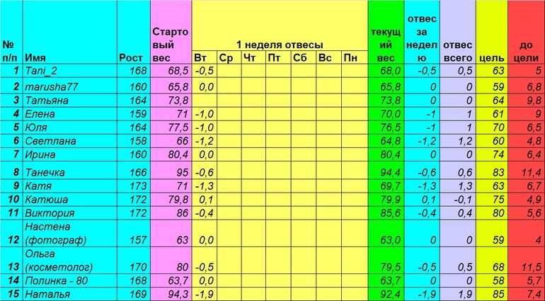 Девочки, все такие молодцы! Такие отвесы за понедельник хорошие! Мы совокупно скинули за понедельник 8,3 кг!!!
