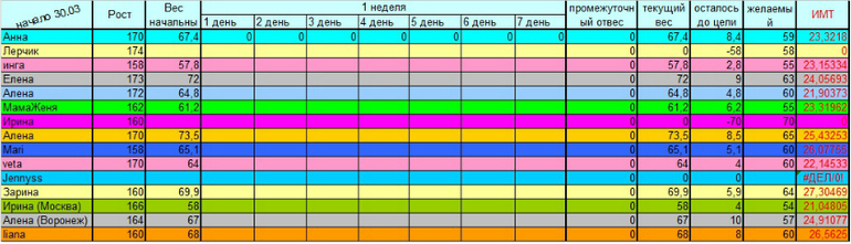 К сожаЛению добавить в таблицу тебя уже не могу. Мы с 30 начали. Сегодня уже 7 день.