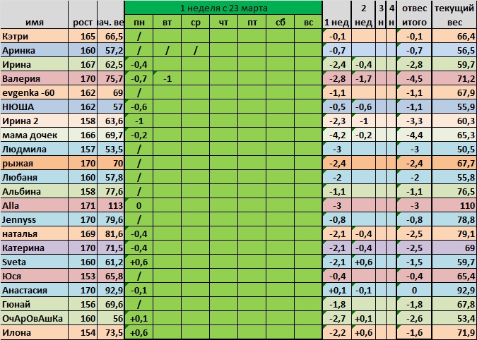 Приветик! -900 вес 71 кг. В табличке первую неделю на вторую надо заменить))))