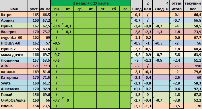 Наши отчеты и результаты:)Девочки всем привет....я на этой недели не на магги...я не успеваю ни диету ни табличку, могу передать табличку желающим) если желающих не будет...вести буду...но с утра врядли пост будет висеть.