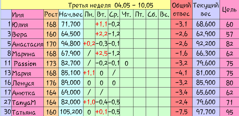 меня пожалуйста уберите с таблички.начну по новой с понедельника.а то эти праздники-всю систему сбили(((