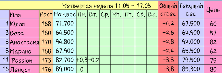 Я бы, если честно, уже бы перешла на -60. А то из-за выходных срывов топчусь на месте...