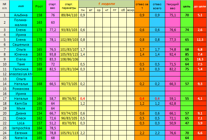 Ещё одна просьба: писать свой текущий вес и отвес! Мне так удобнее заполнять табличку.