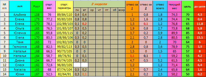 Судя по отвесам, у многих включается механизм расщепления жировой ткани. Не удивляйтесь, что отвесы сейчас небольшие - так и должно быть. Не забываем про питьевой режим! На данном этапе это особенно необходимо, чтобы выводить токсины из организма.